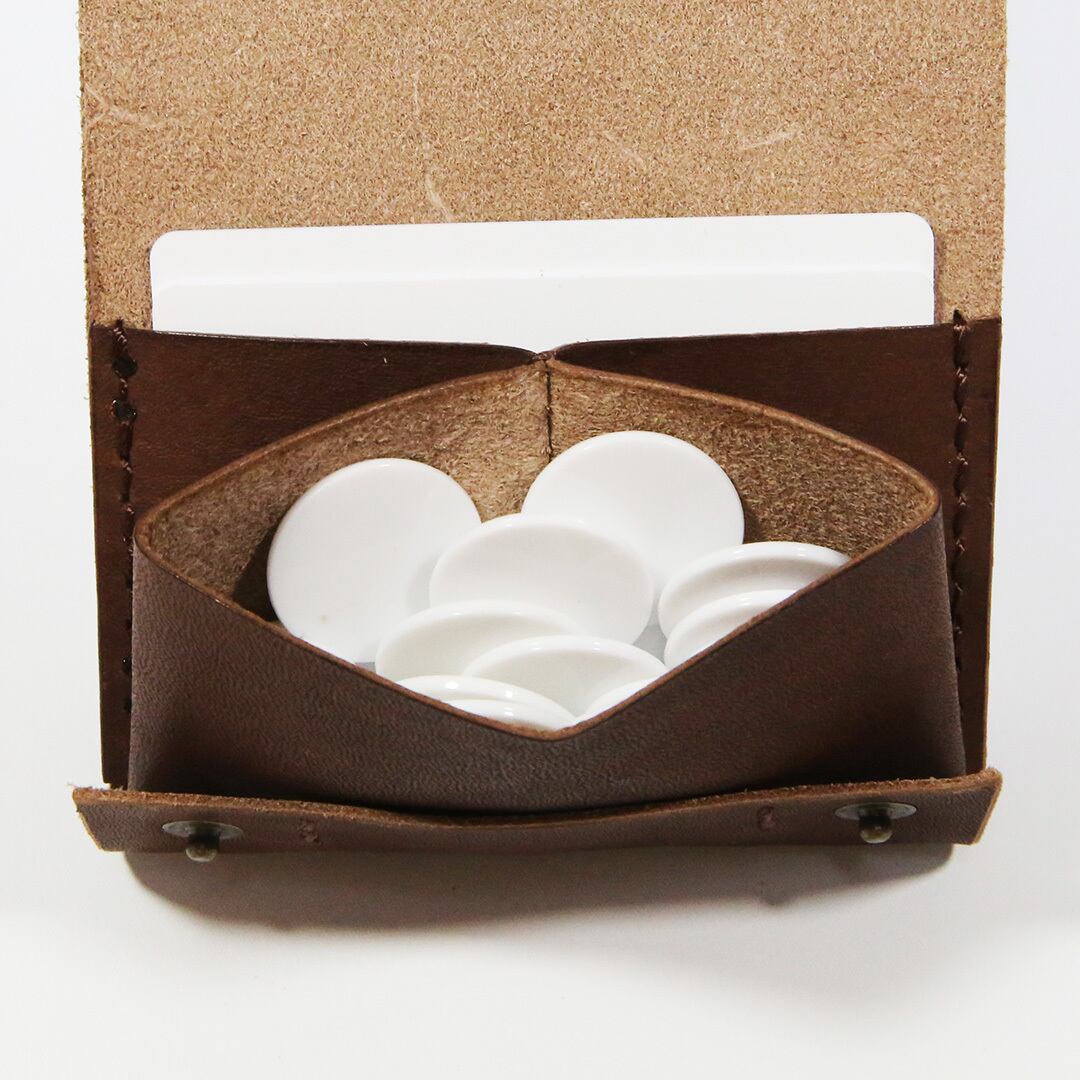 三つ折り→二つ折り仕様にすることにより、カードをメインで多く入れたい方は追加ポケットをつくることができます。(米ドル紙幣二つ折りも収納可)